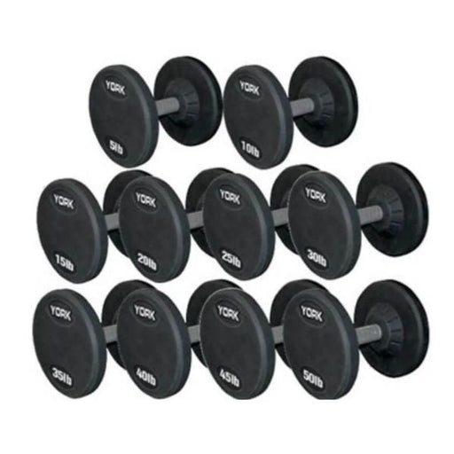 York BarbellYork Barbell Cast Iron Hex Dumbbell Set This set Includes a pair of the following sizes only. (5,10,15,20,25,30,35,40,45,50) YORK’s Cast Iron Hex D...