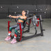 What sets this chest press apart is its iso-lateral movement, enabling independent arm motion for balanced strength development and more natural, biomechanically accurate workouts. This feature allows for greater muscle activation and improved symmetry. Additionally, the machine includes integrated plate storage, making it easy to keep your weights organized and within reach during your workouts.