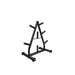 This Olympic A–Frame Plate Tree keeps 2” Olympic weights up off the floor, preventing tripping hazards and allowing for easy plate changes.  It features five external plate storage pegs as well as two storage pegs in the center for smaller plates.  The A-frame design helps to distribute the weight and the wide base pieces keep the stand from tipping.  The attractive black finish complements most workout spaces.